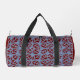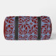 Audaz y opulento duffle de Maroon y Azul. El color azul parece casi ante. Bolsa de remolque para viajes. Esto viene con una correa de hombro. El diseño proviene de un patrón original de baldosas de Oregon, realizado por el fabricante de baldosas Fay Jones Day.