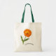 Flor naranja con gotitas de agua. En la parte inferior está el título en texto curvo: Calendula.