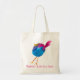 Bolsa de biblioteca con un nombre personalizable que incluye una bonita acuarela rosa y un ilustracion de pájaro azul.