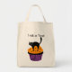 Bolsa de hollín con el diseño gótico de un quequito con un gato negro de Halloween. Elegante diseño gótico de halloween con un tema negro y naranja.