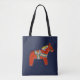 El diseño de la bolsa de caballos Red Dala en esta bolsa es de un caballo de madera tallado y pintado por Julia Persson Morrill