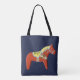 El diseño de la bolsa de caballos Red Dala en esta bolsa es de un caballo de madera tallado y pintado por Julia Persson Morrill