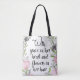"Con gracia en su corazón y flores en su corazón" cita inspiradora en la bolsa.