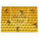 Las abejas vivas vuelan sobre un peine de miel dorado mientras la miel de ámbar transparente se desliza sobre el nombre de su granja o negocio apícola. Ya sea que esté regalando o vendiendo productos de abejas, el embalaje personalizado añadirá encanto y atractivo al artículo.