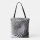Esta sorprendente bolsa de compras presenta una fascinante ilusión óptica en espiral que atrae la atención hacia un vorágine hipnotizante. El diseño crea un sentido dinámico de movimiento, haciéndolo parecer como si las espirales se estuvieran revolcando interminablemente hacia dentro. Con un contraste negro y blanco audaz, esta bolsa de ilusión óptica es moderna y atractiva a la vez. Perfecto para los que disfrutan de una estética geométrica única, está diseñado para girar la cabeza mientras permanece funcional y robusto para el uso diario. Ideal para los amantes de la moda que aprecian un toque artístico en sus accesorios.