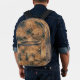 La obra de arte original de ZoeSPEAK en esta mochila recuerda a la concha de tortuga y al cuero, en tonos marrones, desde la crema de caramelo al chocolate oscuro. El bolsillo del cierre está diseñado al estilo de una bolsa o cartera de embrague, con una parte superior de formas lisas casi como nubes. Su borde curvo está resaltado por las cuentas de oro y un delgado borde dorado. El patrón continúa sobre el resto de la mochila, pero con una textura de líneas como el cristal crujido sobre las formas de la nube. Hay un cierre de solapa en el centro del bolsillo de la cremallera, un disco redondo hecho con el patrón de hielo roto, con un delgado borde dorado. Sobre esto hay una esfera dorada con un monograma en negro. El monograma está configurado para personalizar, o borrar si lo prefiere.