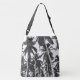 Palm Trees Tropical Gran Diseño de Bolsa Crossbody en blanco y negro.
