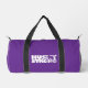 Esta bolsa de duffel de pequeño tamaño se muestra en un color sólido de morado con acentos negros. Mostrado con una huella Husky Strong. Personalizar este artículo o compra como se muestra. Imprimir con licencia