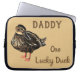Este funda de portátil con temática de pato, personalizado con texto, será un regalo reflexivo para el Día del Padre. Creé este patrón de pato a partir de la imagen de mi pintura acrílica titulada, a la orilla del pato.