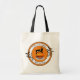 Pequeña Bolsa de Tote mostrada en el color natural con correas negras con un gato negro feliz de Halloween y calabaza impreso. Personalizar este artículo o compra tal cual.