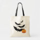 La Bolsa de Tote se muestra en forma natural con una huella de murciélagos de Halloween. Personalizar este artículo o compra tal cual.