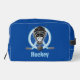 Bolsa de kit de dopp de diseño de hockey con texto de personalizable y color de fondo.