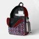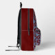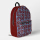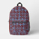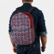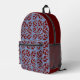 Mochila maroon y azul, opulenta. El diseño proviene de un patrón original de baldosas de Oregon, realizado por el fabricante de baldosas Fay Jones Day.
