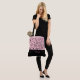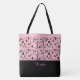 Esta encantadora mochila hacia adelante muestra la palabra "novia" en un color de texto rosado sobre negro con la bolsa superior de la tota en rosa con viñas negras y rollos por todas partes. Tiene mucho espacio para el texto personalizado. Los gráficos y el texto están a ambos lados de este bolso. Mango negro. Personalizar más adelante o compra como se muestra.