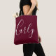 ¡Le encantará este tote! El texto blanco está diseñado en letras de guiones de moda y se coloca sobre un fondo borgoñoso rico.