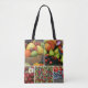Collage de fruta envuelve este sencillo tote. Verano deliciosos frutos y bayas.