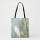 Egret está parado al borde de la alta hierba de pantano. La imagen fotográfica ha sido tintada con un filtro verde y se refleja de frente a atrás.