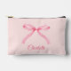 Este diseño estético de coquette de moda con un lazo rosa ofrece personalización con la novia, las damas de honor o el nombre del asistente a la fiesta de despedida de soltera.