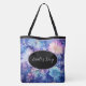 Esta bolsa tote de hombro se muestra con un hermoso diseño de impresión de peonías florales azules múltiples. Texto de Bolsa de novia en el frente y atrás, pero puedes cambiarlo a lo que prefieras.