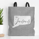 Moderna casa de campo con bolso personalizado con el nombre de su familia dentro de su mapa estatal. Fondo de textura de tela burlap falso (por favor, anotar bolsas no están hechas de material burlap). Haga clic en el botón Personalizar para agregar su propio texto y crear su propio diseño único.