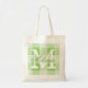 Monograma de nombre personalizado en bolsa de tote | Patrón de gingham verde de Apple. Elegante diseño de logotipo con iniciales de letras monocromáticas. Idea de regalo vintage para novias y damas en fiesta de boda o ducha de novia. Diseño de impresión de estilo moda de país. Colores de personalizable.