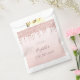 Una bolsa de bienvenida para una fiesta de cumpleaños 10 glamurosa y femenina. Una falsa oscuridad dorada subió, fondo degradado con un elegante goteo rosa de purpurina dorado, pinta goteo. El texto: Tempate por un nombre escrito en oro rosa oscuro con una escritura de estilo moderno con letras a mano. Plantillas para una fecha y una edad de 10 años.