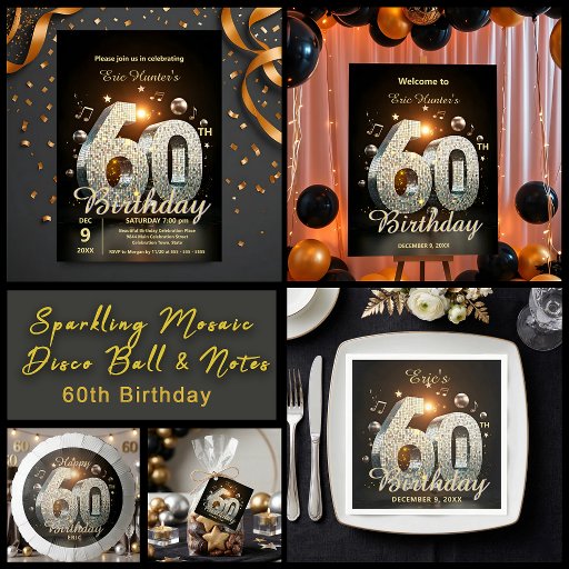 Sparkling Mosaic Disco Ball & Notes 60th BirthdayDiseñado por Kristina Lj Petrovska