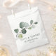 Hojas de eucalipto elegantes en acuarela con fuente clásica y script. Gran favor para la recepción de la boda.