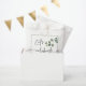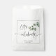 Diseño moderno y minimalista con eucaluptus acuarela con texto, nombres y fecha. El tipo de letra del guión "Celebremos" con glifo y la rama eucaluptus que cruza la estrecha Línea del marco hace que el diseño sea más tridimensional e interesante. La paleta de un solo color hace que sea minimalista y limpio, fácil de mezclar y concordar para tu evento. Llene este bolso de favor después de su elección. Un gesto dulce y agradable a sus invitados. Un regalo del corazón.