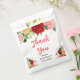 Esta hermosa y elegante bolsa de favor para desayuno nupcial presenta rosas rojas, rosadas y naranjas con follaje en acuarela. El texto combina fuentes manuscritas y serif para un estilo moderno y elegante. Esto es perfecto para un desayuno nupcial rústico de verano.