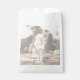 Modernas bolsas de favores para bodas con fotos que presentan un diseño simple con "el amor es dulce" en un guión de estilo rústico junto con tus nombres y fecha de boda sobre tu foto favorita con un overlay opaco. Esta elegante bolsa de favores matrimoniales con un diseño minimalista es ideal para cualquier estilo de boda.