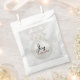 Favorecer las bolsas con un diseño de vacaciones mágico. Con una bola de Navidades plateados con decoraciones de copos de nieve y terminada con un arco de bonito plateado. El fondo es un ilustracion de luces de boquilla plateadas con elegantes estrellas diseminadas por todas partes. El texto dice: Alegría al mundo.
