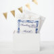 Estas bolsas de favores de fiesta con tema floral presentan elegantes flores azules y mariposas, estableciendo el tono perfecto para una memorable despedida de soltera Algo Azul Antes de Hacer.