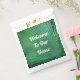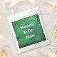 Bienvenidos a sus invitados con estas bolsas de favor personalizadas que presentan una foto de una hoja de palma verde. Todo el texto se puede personalizar fácilmente para satisfacer sus necesidades.