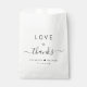 Bolsos de moda blanca para los invitados bodas que presentan "Amor + Gracias" en una tipografía moderna y simple y un guión elegante con chispas, tus nombres unidos por un corazón y tu fecha boda.