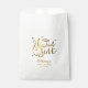 Elegante tema ángel de ducha de bebé bolsa de favores con un guión con letras a mano que dice "el cielo enviado" en falso purpurina de oro con un halo. Este diseño blanco y dorado es perfecto para una ducha neutra de género.