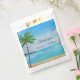 Océano, playa tropical, arena, acuarela, costa, novia y novio rústico, moderno, dorado, 50° aniversario Boda bolsos de favores. Tipografía simple, guión. Personalízalo con tus detalles.