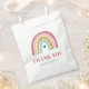 La Bolsa Favor del Cumpleaños Rosa Cute Boho ofrece un adorable dúo de arcoiris en tonos rosas, ruidosos, mostaza, agua y marina, junto con caligrafía moderna.
