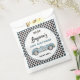 Estos atractivos bolsos de favores combinan el encanto vintage con el brillo lúdico, con un auto de carrera retro bellamente ilustrado en una serena sombra de azul polvoriento.