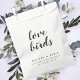 Sencillo y elegante bolsa de favoritas para bodas de "aves amorosas" en un moderno estilo de diseño minimalista con una tipografía manuscrita en blanco y negro clásico escrita en un estilo informal. El texto puede ser fácilmente personalizado para un diseño único y de tipo para su día especial. ¡La boda perfecta para los amantes de la naturaleza y de los pájaros (no se incluye la semilla de ave silvestre)!