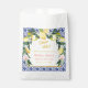 Este encantador, hermoso y fresco diseño de bolsas de favores para baby shower o boda con baldosas azules de limón cítrico mediterráneo italiano presenta vibrantes limones a la acuarela y delicadas rosas rosadas, complementadas con un intrincado patrón de baldosas azules mediterráneas italianas con letra script "Grazie Mille" en caligrafía dorada y letras rosadas. Estas bolsas de favores prometen traer el encanto del Mediterráneo a tu fiesta de boda. Fácilmente personalizables y editables. Puedes transferir este diseño a una variedad de productos sin esfuerzo.
