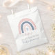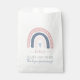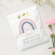 Dé a sus invitados deliciosas golosinas cuando vengan o manejen por su casa para celebrar su ducha de bebé. Póngalo en esta bonita bolsa de favores con diseño rosa y arcoiris azul.