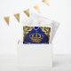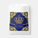 Bolsa de regalo de la ducha de bebé Príncipe con una hermosa corona azul real y dorada sobre un fondo de remolino azul real y dorado. Puede cambiar el movimiento y eliminar los elementos según sea necesario para el evento.