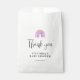 Celebra tu bebé arco iris con esta encantadora bolsa de favores, con un colorido diseño de arcoiris y acentos juguetones. Presenta un vibrante motivo arcoíris emparejado con suaves acentos pastel, ideal para celebrar el día especial de tu niñita. Añada el nombre del bebé, la fecha de la ducha o un dulce mensaje para que sea el único suyo. Perfecto para empaquetar pequeños regalos o dulces para sus huéspedes, esta bolsa es una deliciosa adición a la decoración de su ducha de bebé. Su diseño vibrante y su temática más sentida crean un ambiente alegre y acogedor para su día especial. Celebra a tu chico con estilo con esta bolsa favorita de Baby Shower Chica arcoiris, un detalle divertido y memorable que los invitados adorarán.