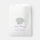 El elegante y dulce bolso de personalizado para bebés con favores de ducha cuenta con un adorable cría de elefantes recién nacidos con salpicaduras en forma de corazón y texto personalizado que puede ser personalizado. Los colores de lavanda violeta, gris y blanco son perfectos para acoger a una niña.