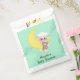 Un lindo cordero con oso de peluche encaramado en una luna creciente hace una deliciosa bolsa de favores para la ducha de bebé. Con un fondo de agua de un minty-fondo y otros productos a juego disponibles en este diseño. Edite el texto de ejemplo con el nombre u otro texto de su bebé. La adorable gráfica de cordero cortesía de Kristi W. Designs.