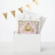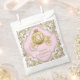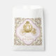 Una ducha de bebé rosa y dorada favorece las bolsas con un hermoso carro de princesas dorado sobre un fondo rosa bonito y giratorio dorado. Puede personalizar fácilmente este lindo bolso de bienvenida con el texto de su elección, y puede cambiar el color de fondo.