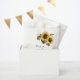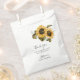 Bolso de bienvenida y decoración floral rústica con ilustracion acuarela de girasoles amarillos con aliento de bebé.