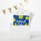 Baloncesto Fiesta de cumpleaños a favor de bolsas para regalos. Diseño divertido con reunión con amigos y familia. Personaliza tu texto. Fondo azul y bolas amarillas. También es ideal para torneos, eventos de club, fiestas de partidos, celebraciones, reuniones, barbacoa, día infantil y más.