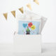 ¡Una fiesta muy agradable para los clientes! El diseño presenta un adorable cachorro Bouvier des Flandres, vestido de fiesta y adornado con gorras, rodeado de globos coloridos y serpenteantes. El nombre se puede cambiar fácilmente; sólo tiene que hacer clic en el botón de personalización.